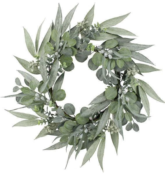 This gorgeous 24″ eucalyptus wreath boasts that soft and neutral frosty shade of green that is the hallmark of this plant. For entry or to accent your interior with a touch of nature, this wreath is a sure thing