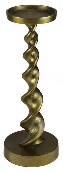 Ready for table, console or mantel styling, our aluminum candleholder in brushed bronze finish features barley twist column. Available in two sizes–display together for extra style points! See our collection of safe, flameless flickering candles to complete the look.