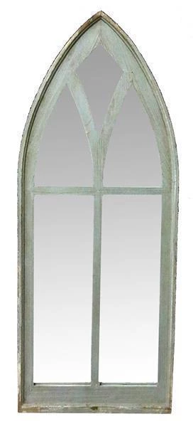 Our tall cathedral window wall mirror features a dreamy distressed sea blue finish. Lovely over your entry console, in a family room–anywhere you want to bring a touch of rustic.