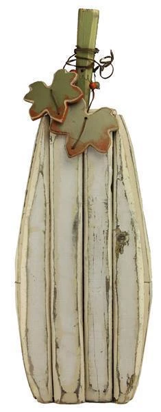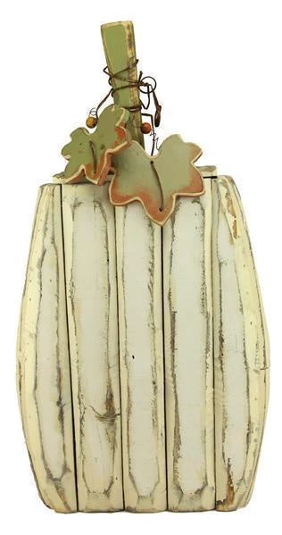 Artfully crafted of wood and tin and finished with primitive whitewashing effect, this pumpkin has major fall appeal.