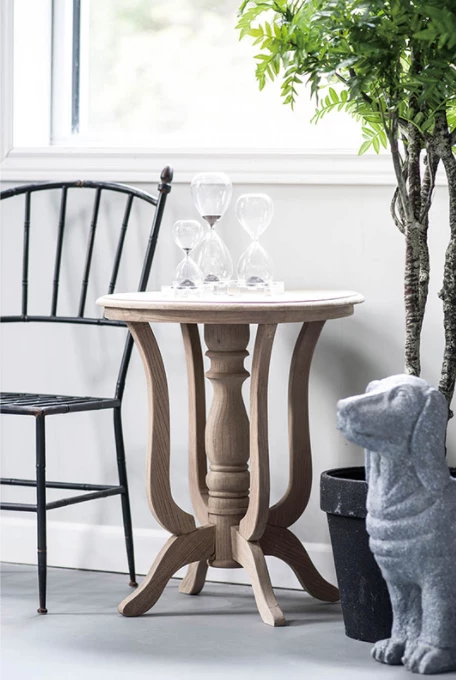This elegant side table features solid wood construction and sleek classical styling. The warm finish feels very natural, perfect for rustic or traditionally-inspired interiors. Use next to a favorite armchair, on either side of a sofa, or as a distinctive alternative to a bedside table.