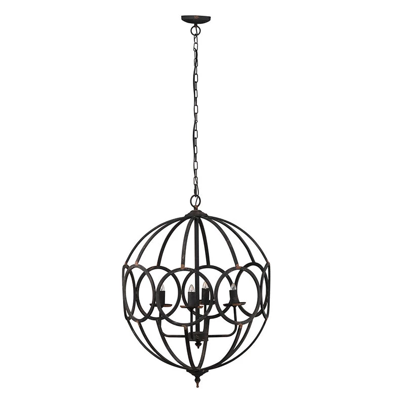 Make a strong decorative statement through sophisticated lighting with the ornate Malin Four-Light Orb Chandelier. This piece is carefully constructed from durable metal and finished in versatile matte black for natural coordination with a variety of interior styles. Use as accent lighting above a table, seating arrangement, or anywhere that could benefit from a bold central focal point.