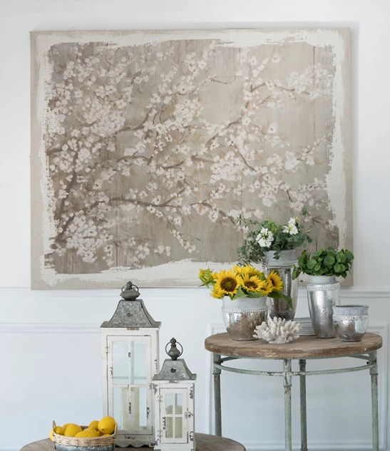 Let the soft, luminous cherry Blossom Canvas Print carry the imagination away with its grace and charm. This large 60′ print makes a beautiful focal point for most home or office settings. Neutral colors reflect nature’s simplicity while evoking whimsy and calm. The painting can literally almost go with any color scheme! Whatever color you put with it is the color it will draw out!
