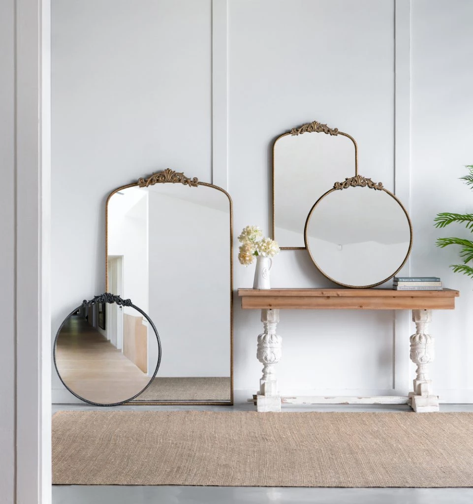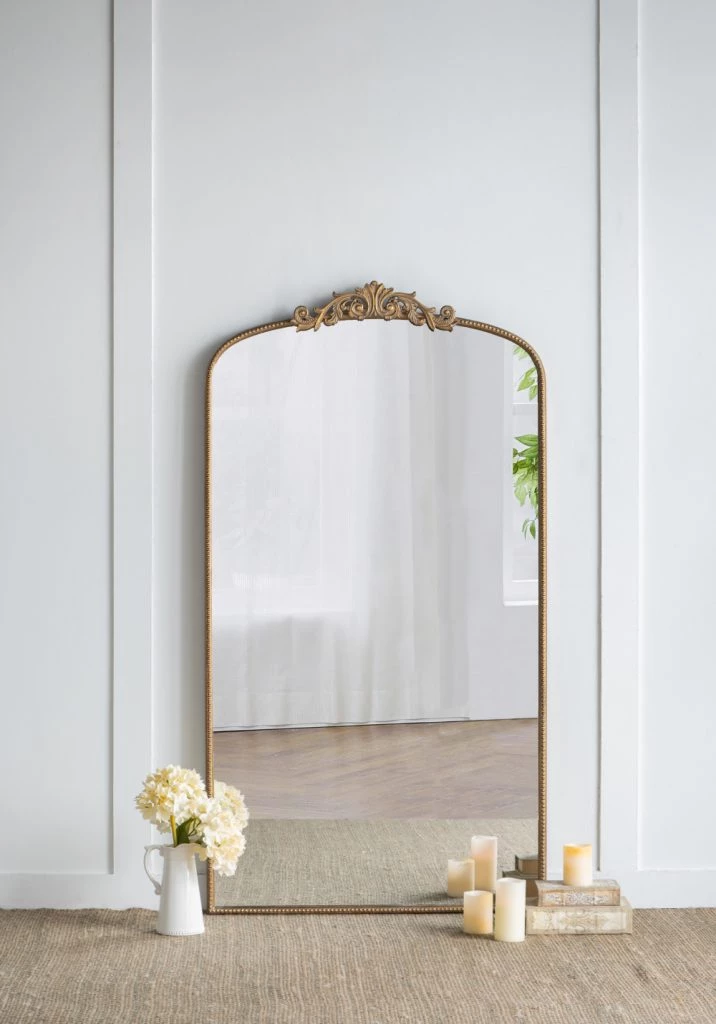 Create visual interest to a large space with this gold baroque inspired mirror.