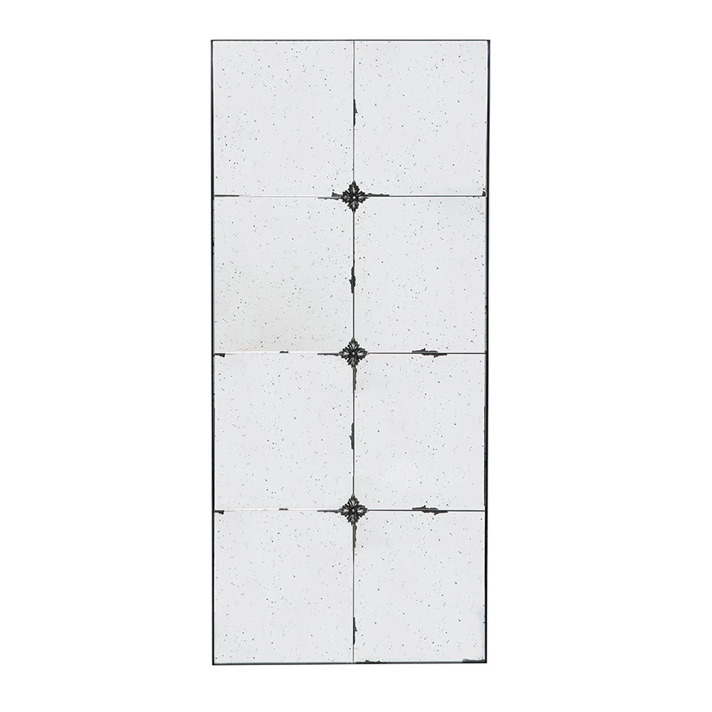 Rustic and romantic, our style-driven round mirror is composed of heavily antiqued glass panels with resin flower pattern hardware where the various four corners meet. Each mirror is slightly different in hue, creating a composition with subtle reflection and vintage charm.