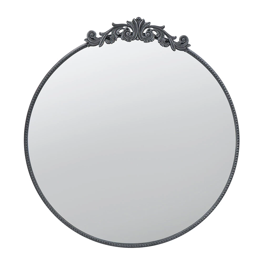 Create visual interest to a large space with this black baroque inspired mirror.