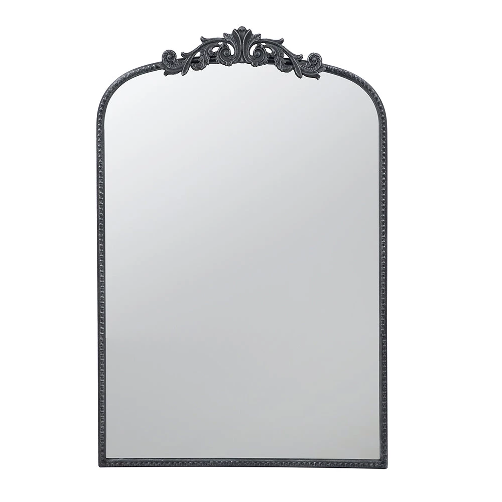 Create visual interest to a large space with this black baroque inspired mirror.
