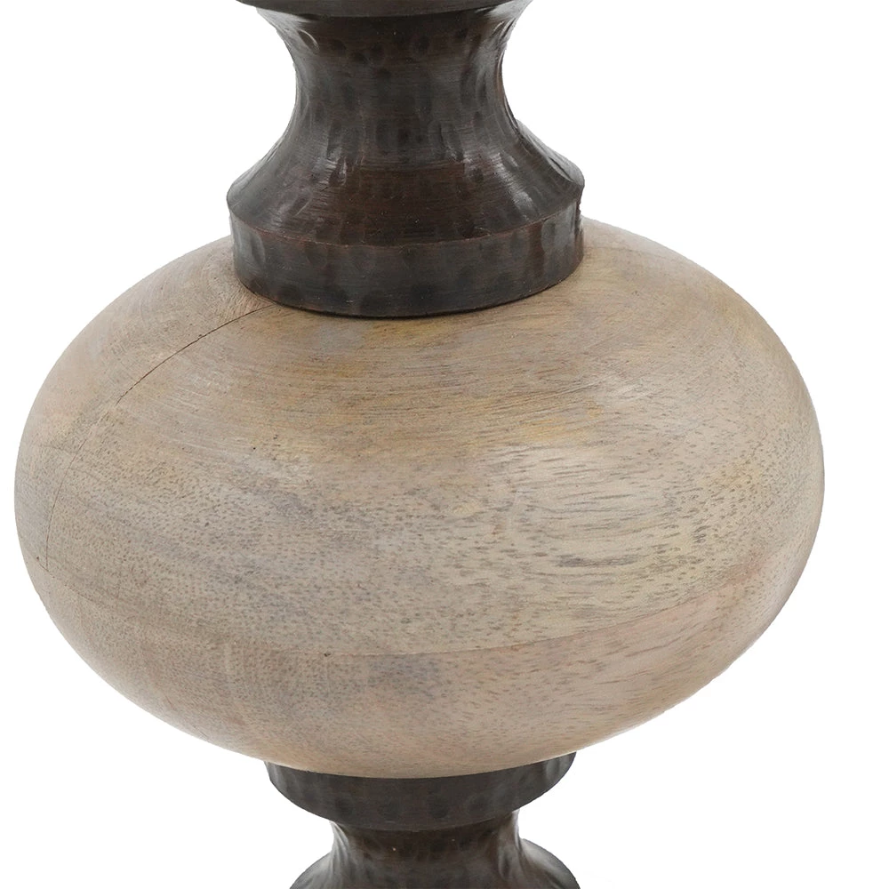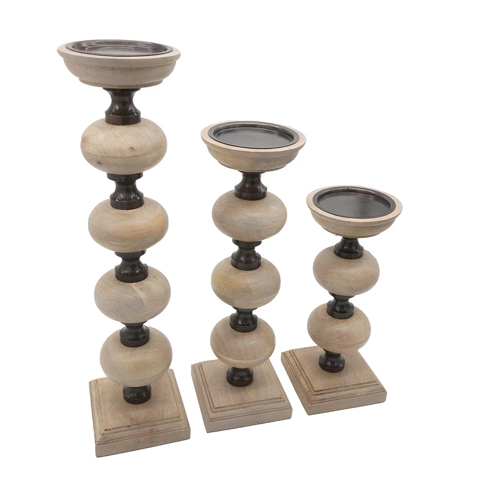 Featuring stacked wood orbs atop metal spools for a contemporary look the Nahla candleholder is a great accent for any room. The trio of curvaceous candleholders are sized to accommodate pillar candles.