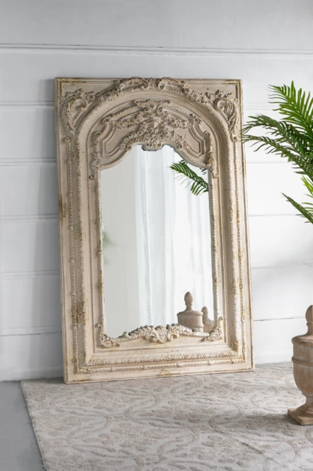 Make a statement with your decor with this regal, Venetian-inspired floor mirror. An antique white finish highlights the vintage charm of this piece, which also comes with intricate scroll fauna detail. It’s sure to be a gorgeous centerpiece in any room, from the living room to the bedroom.
