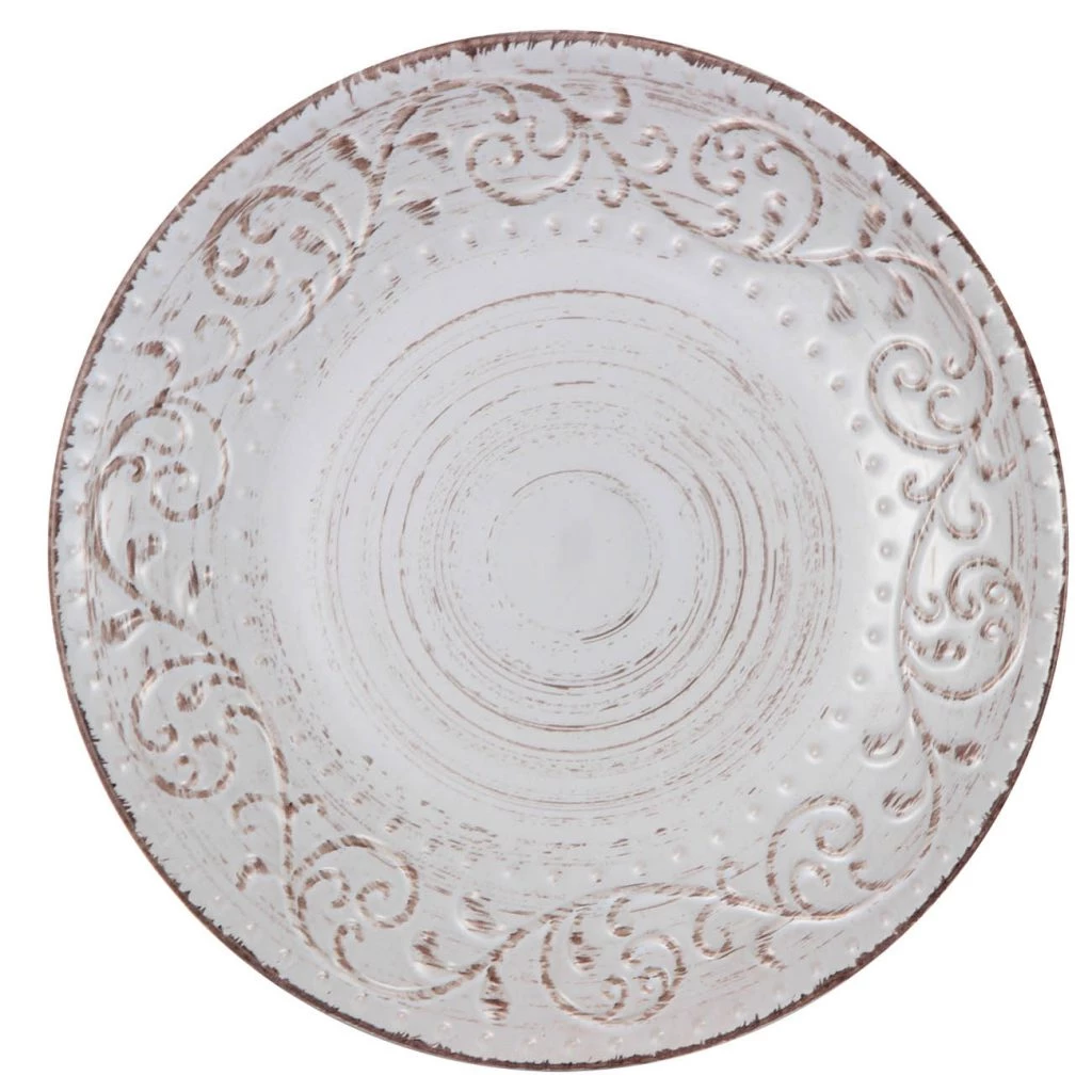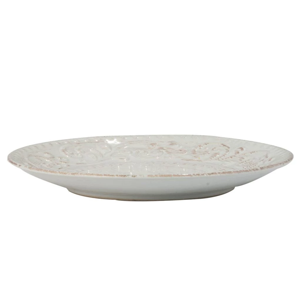 With a gentle swirling pattern, delicate beading, and antiqued white finish, the Rustic Flare Dinner Plate offers rustic elegance and the durability of stoneware. Mix the turquoise and white Rustic Flare dishware interchangeably to create a captivating dinner table. These charming dishes will complement a variety of styles with their ageless beauty and durability.