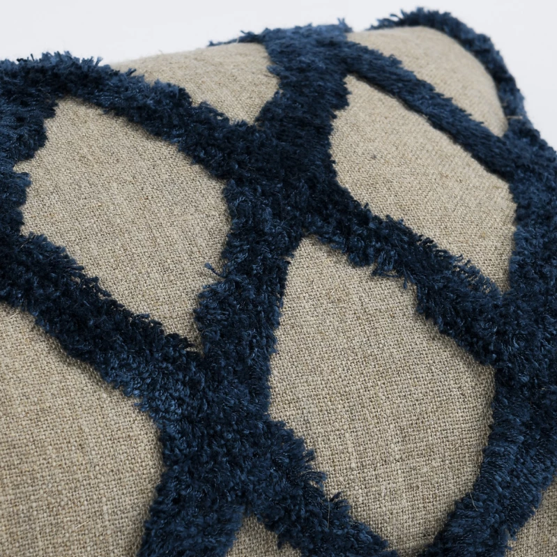 K&K Interiors Square Cotton Flax Navy Blue Pillow With Greek Key Border Pillows