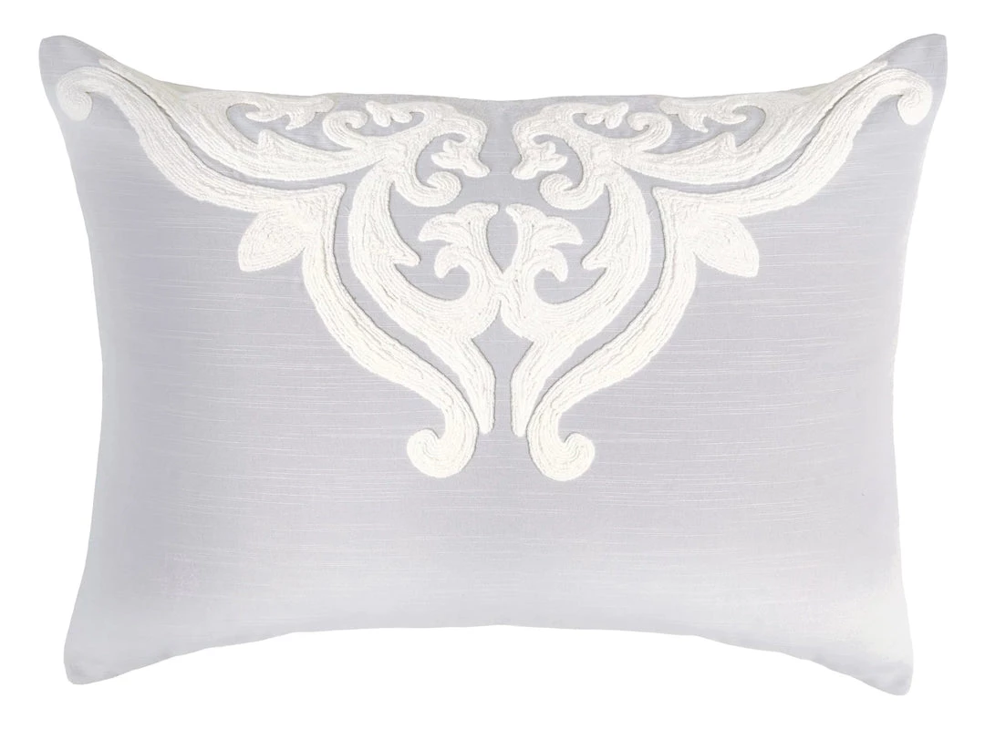 This distinctive white and tan set with a geometric pattern and embroidered details will bring sophisticated style to your bed.
