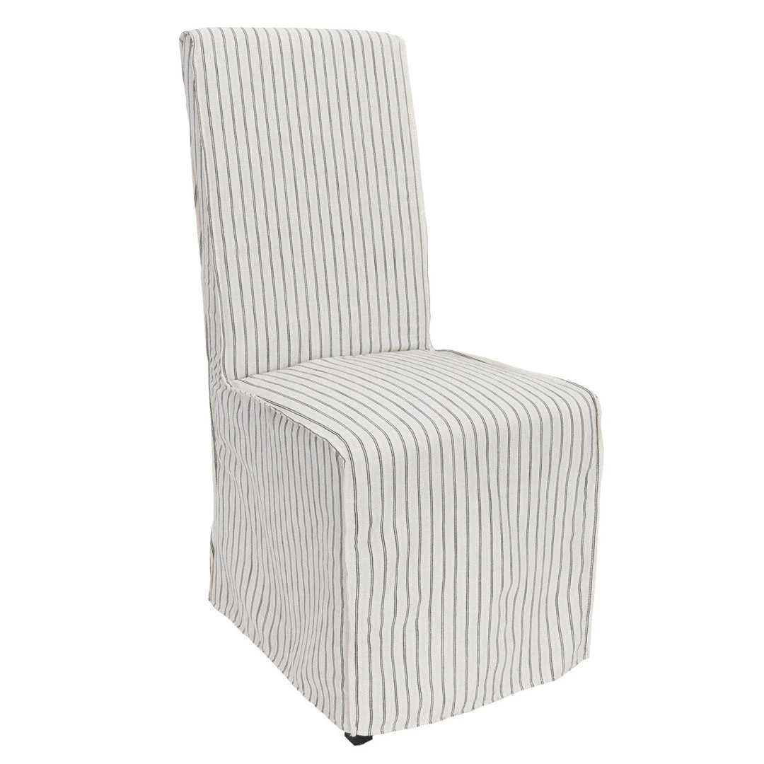 Our elegant slipcovered dining chairs have classic ticking covers, just right for your modern Farmhouse.