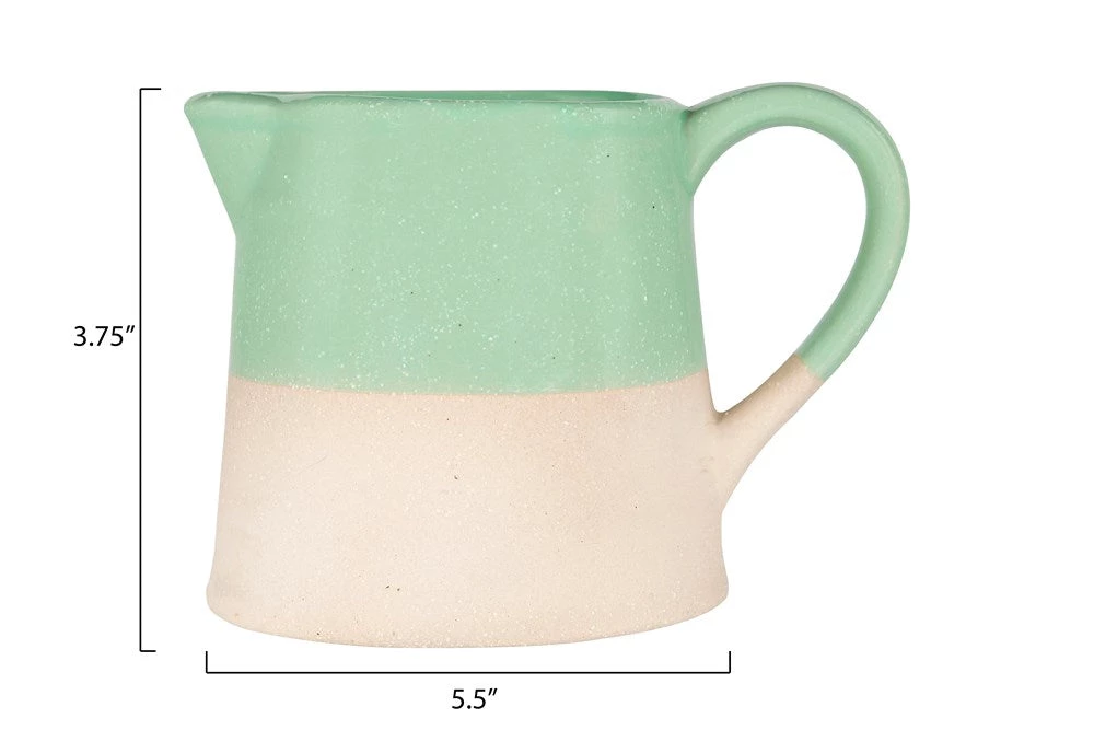 Fresh as a farm morning, you’ll love pouring your cream from this spunky little stoneware pitcher with matte mint and white glaze.