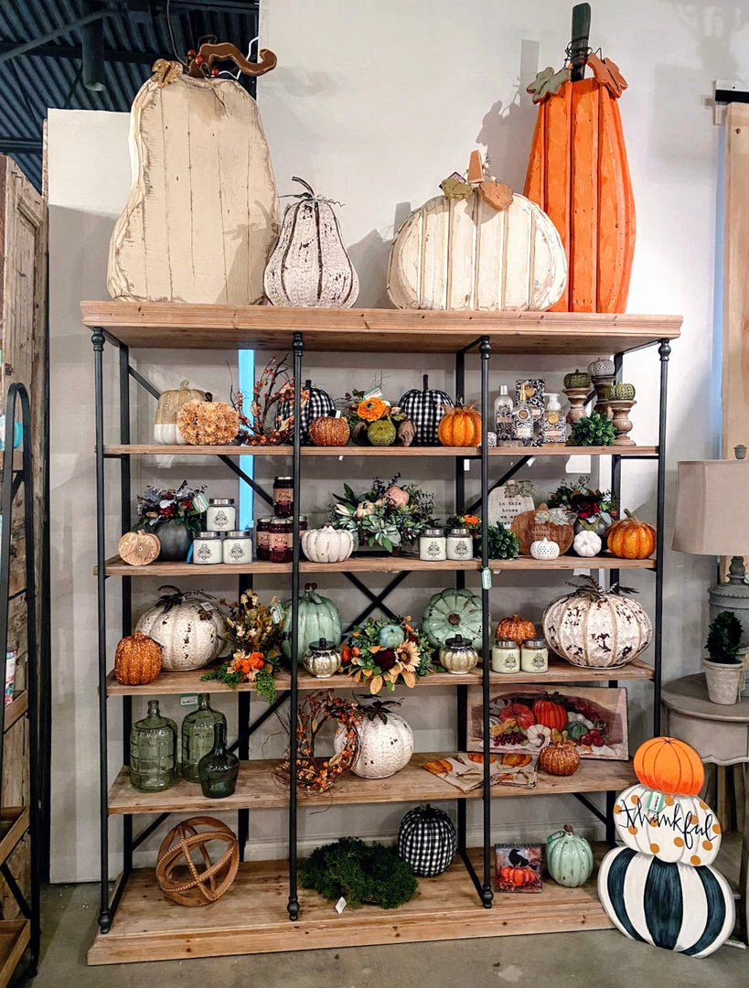 This industrial farmhouse style four-shelf, three-section wood and metal etagere is the perfect piece for your office, dining room, living room, or game room.