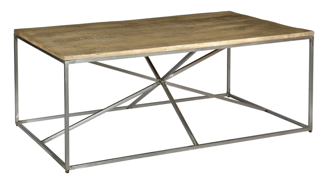 Solid wood modern/contemporary coffee table! Fun and unique design. Made of solid mango wood and metal base!