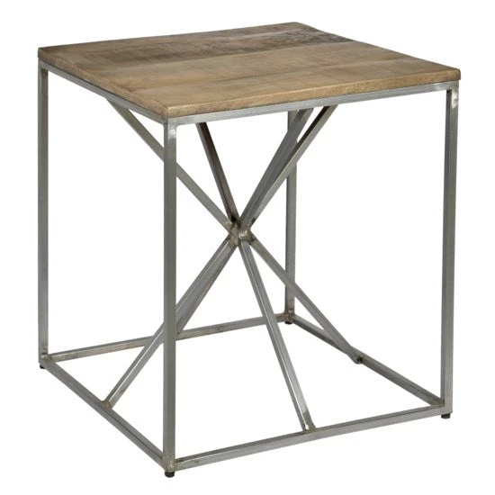 Solid wood modern/contemporary end table or accent table! Fun and unique design. Made of solid mango wood and metal base!