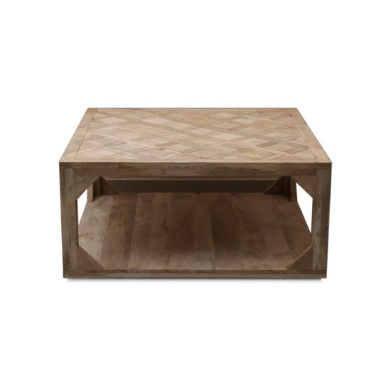 This solid wood transitional coffee table with a beautiful parquet top is a piece you do not want to miss out on! Will complement any decor style!