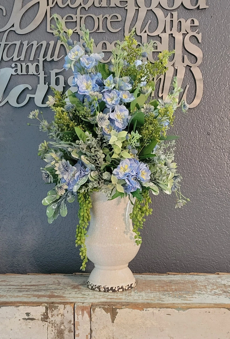 This real touch blue delphinium floral looks so fresh it will fool people.