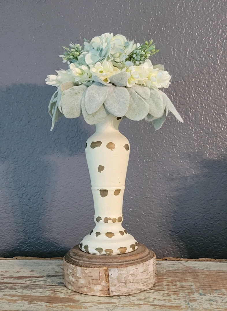 This versatile floral is designed with lamb’s ear, hops and hydrangea.Â