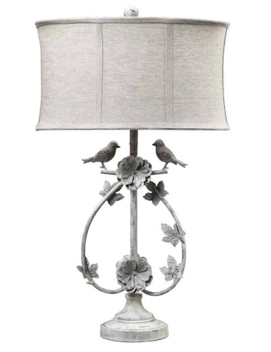 Rev up your interiors with this gorgeous antique white iron table lamp with bird accents.
