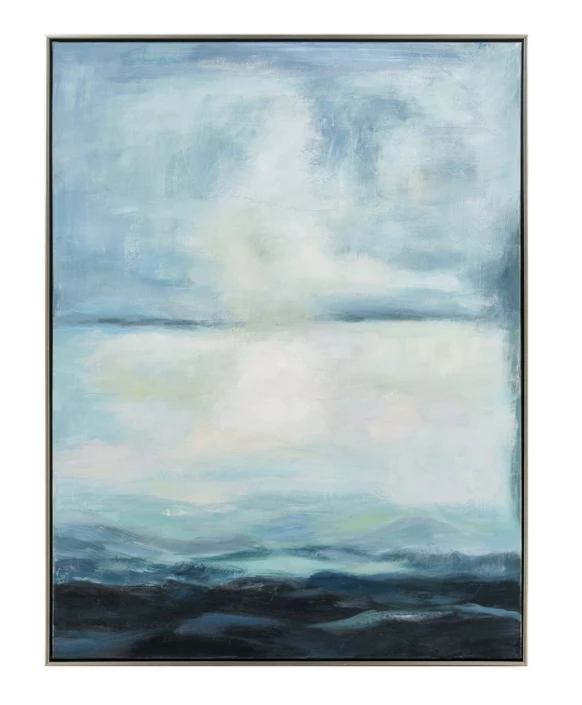 Beautiful framed oil painting in gorgeous shades of blue, cream, and green.
