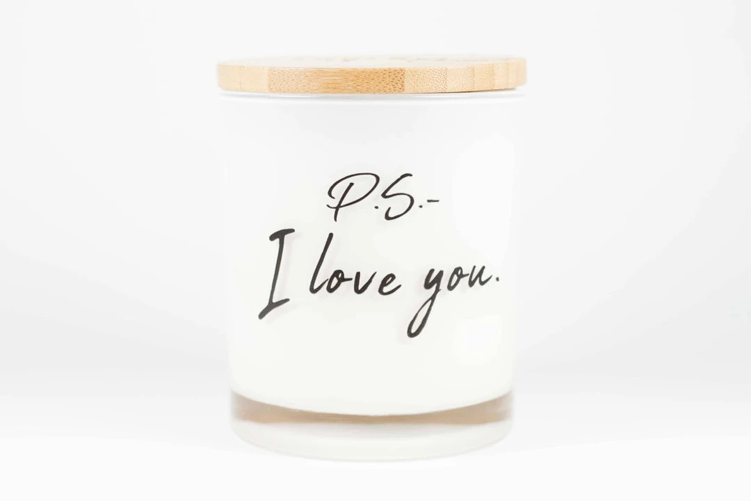 The wording is printed directly onto the milky-white glass vessel to give a crisp, clean look to each candle.