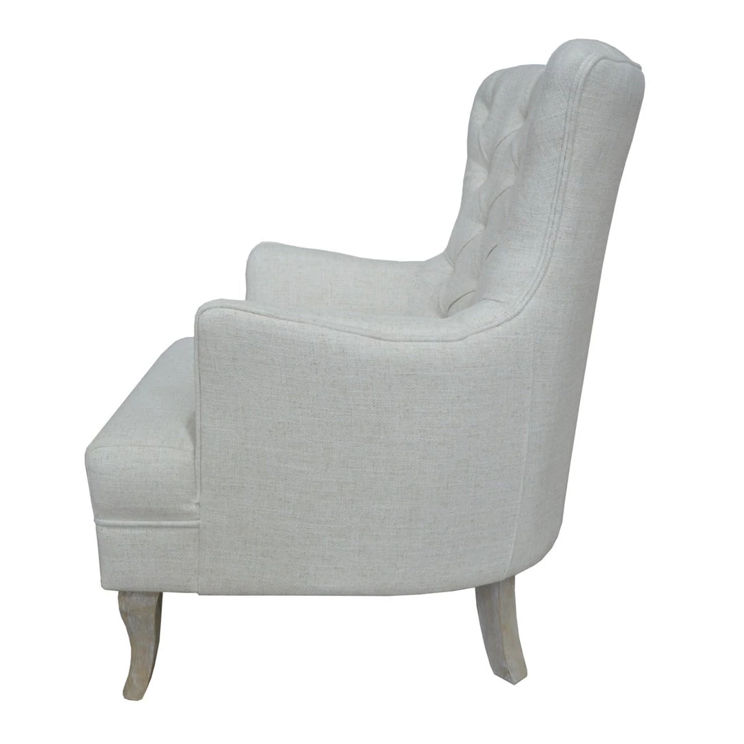 This edgy tufted wing chair is the perfect selection for that reading nook or master bedroom sitting area. Add a touch of class and style to elevate the feeling of any space!
