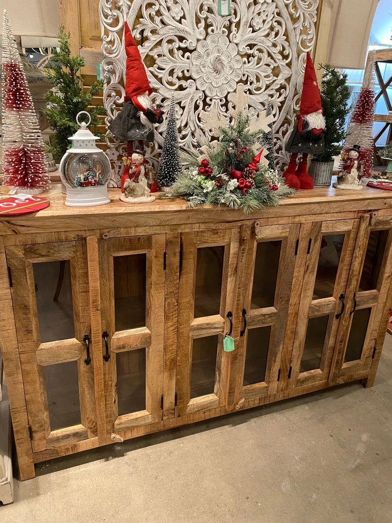 Gorgeous solid mango wood console with glass doors. Store, display, set up for media!