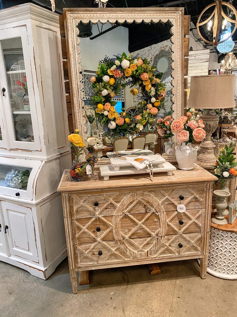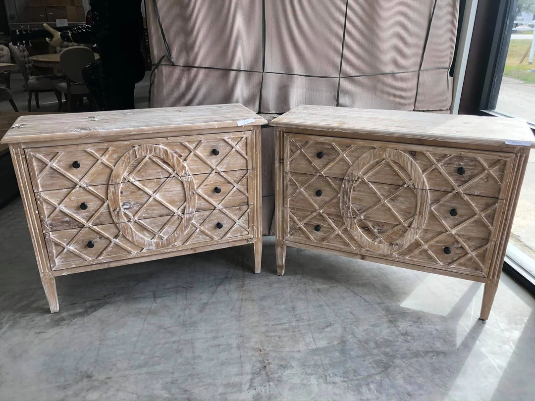Young and fresh, this oversized whitewashed nightstand with tapered legs and wonderful carved lattice details offers three drawers for storage of all your essentials. Also a perfect small accent piece anywhere in your home.