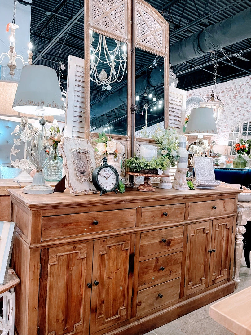 A gorgeous and versatile sideboard in natural finish with 4 panel doors and 6 drawers! Perfect for your dining room buffet or your TV console–or an accent piece anywhere. Plenty of storage and style here! Made out of solid hand carved elm wood!