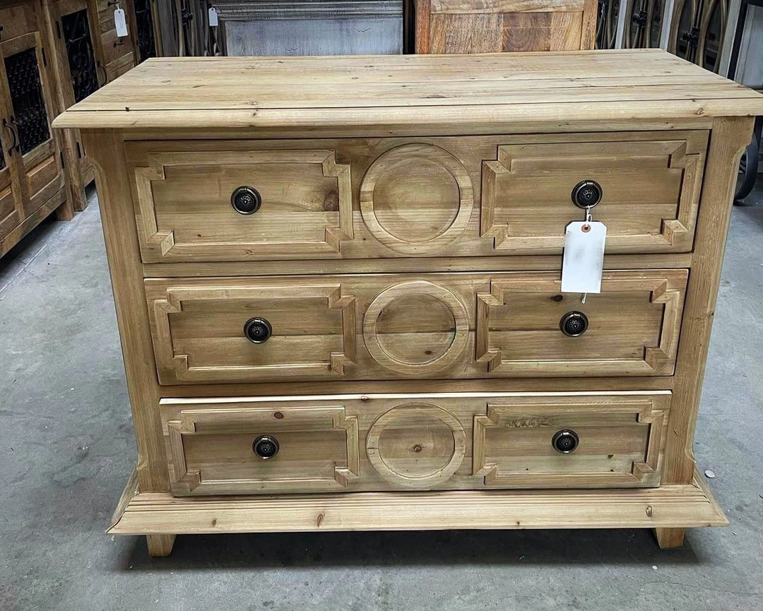 Unexpected and fresh, this natural wood nightstand, and/or chest, features great detailing on doors. Versatile size makes it the perfect accent table, entryway chest, or awesome large nightstand. Great storage with 2 inset panel doors and shelves inside!