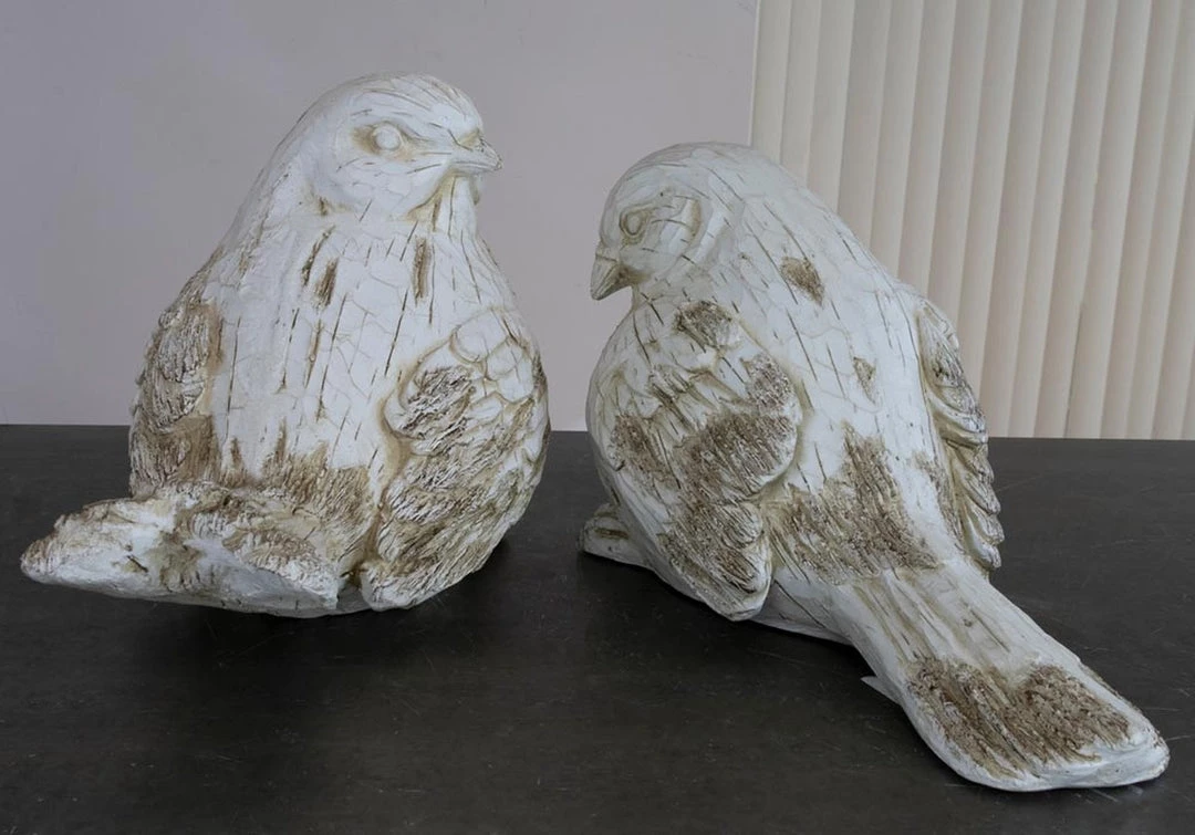 Uh oh–your friends will think you’ve been to a specialty artisan shop without them when they see these eye-catching carved wood-look resin bird figures with whitewashed finish. Distinctive and a great size for display.Â