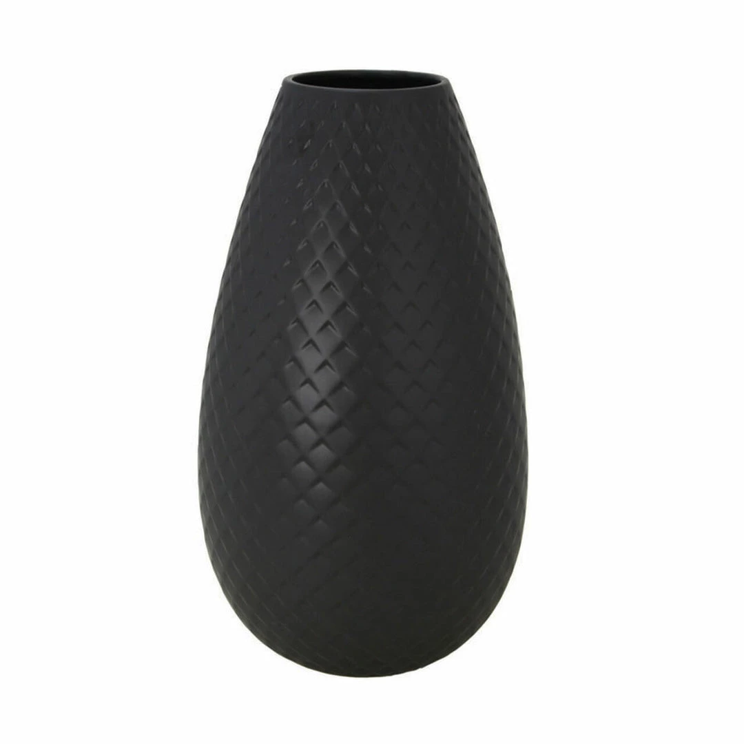Create a striking display with our Athena ceramic vase–with or without florals. It features bold lines, a matte black glaze and a debossed diamond pattern that will steal the show. Available in two sizes.