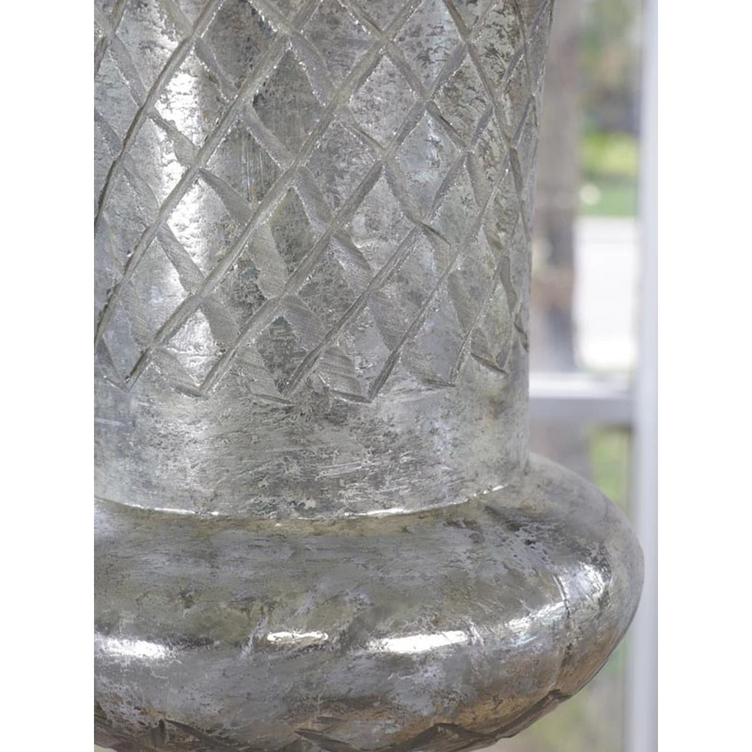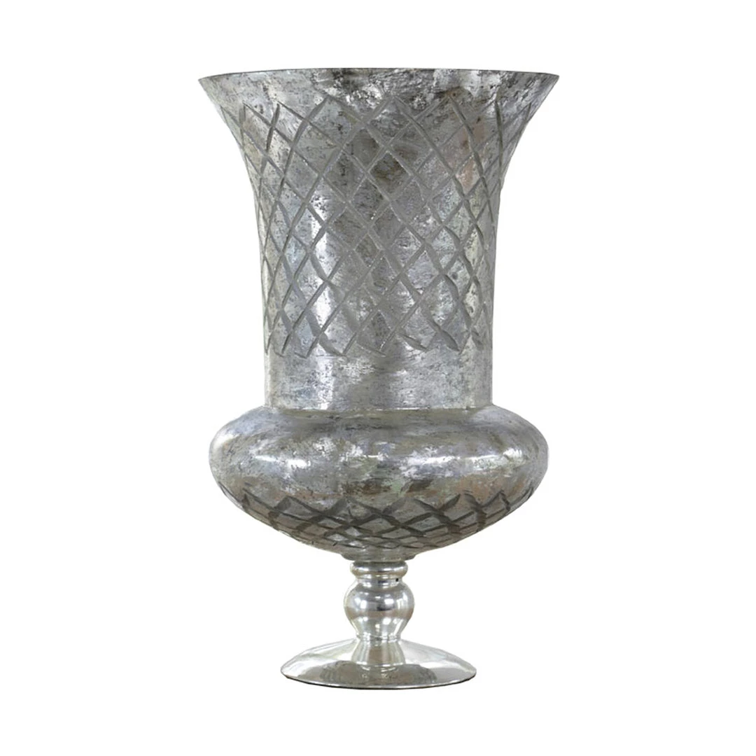 Make a statement with this stunning pedestal glass vase with etched design and silver finish. This lovely decorative accessory will be admired on table, mantel or shelf.