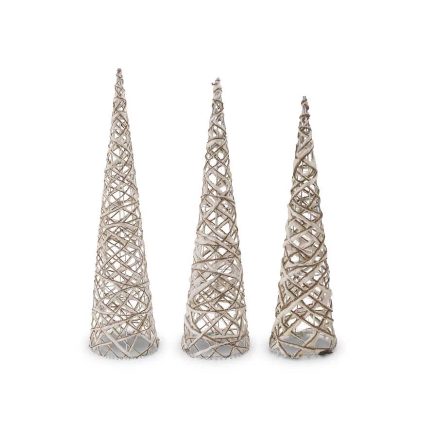 Beautiful cream and tan yarn cone tree, in various sizes.
