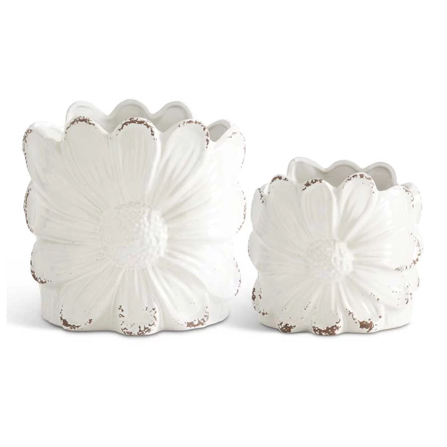 Distressed White Ceramic Daisy Pots in 2 sizes! Fill with your favorite flowers or use for display by themselves! So cute!