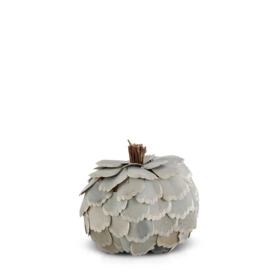 Ready for your fall decorating, our whimsical sage pumpkin is crafted from scalloped-edge wood chips. The perfect neutral fall accent for trays and bowls, mantels and shelves.