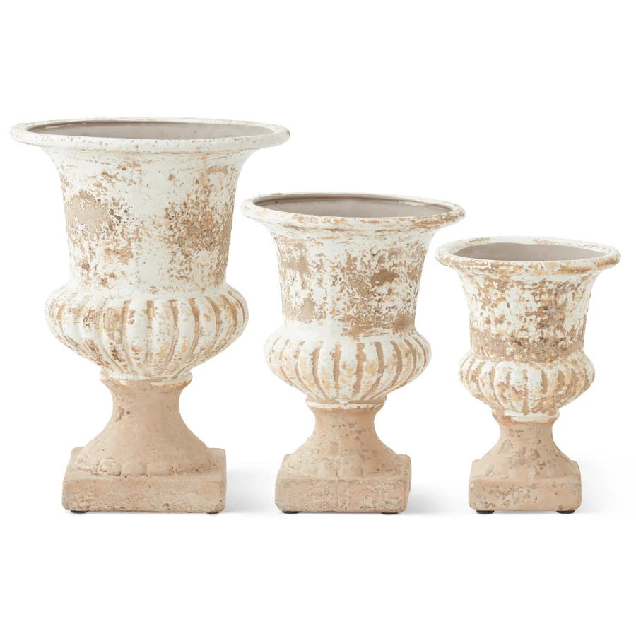 Create a grouping with these lovely urns as is–or design your floral arrangements in them. Â