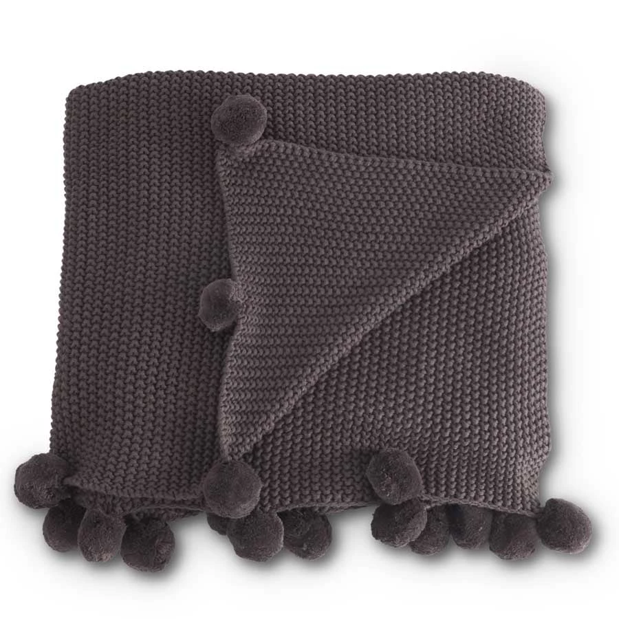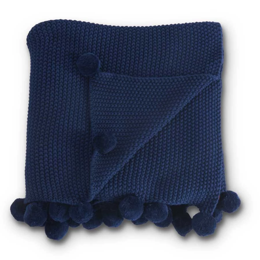 Hygge to the max with our oh-so-soft, beautiful moss stich knit throw. Trimmed with jumbo pompoms and available in blush pink and moss blue!