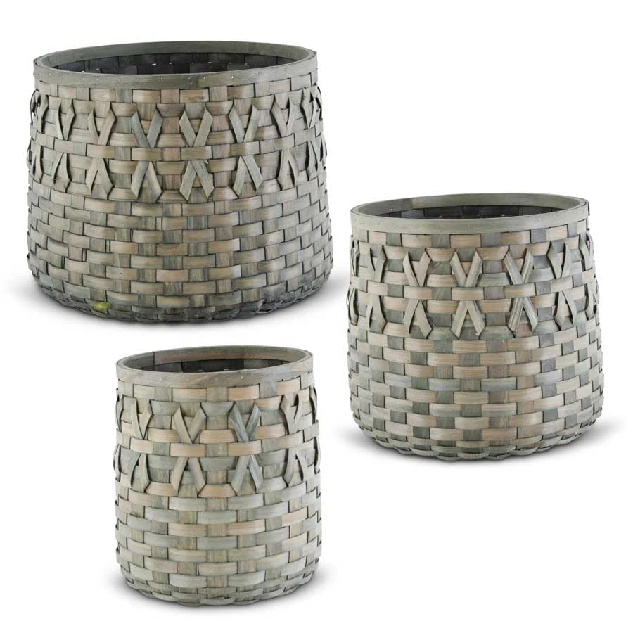 We’re loving the earthy appeal of these embellished woven baskets stained a soft, neutral sage green. Great for display, organization, and storage of toys and throws, Choose from three sizes.