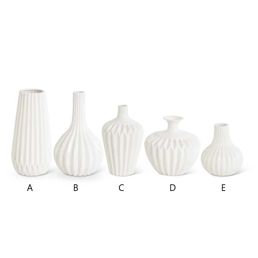 White is the classic neutral you can use anywhere. And you’ll want at least a trio of these accordion-fold white porcelain vases, each with a colorful flower, to line up on your windowsill, vanity or mantel. Or to group in a chic tray on your coffee or dining table! Five styles to choose from.