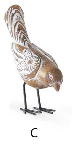 These saucy resin bird figures feature animated standing poses and stylized carved-wood look wing designs highlighted by whitewashing. So unique and charming! Four styles to choose from–but how to choose?
