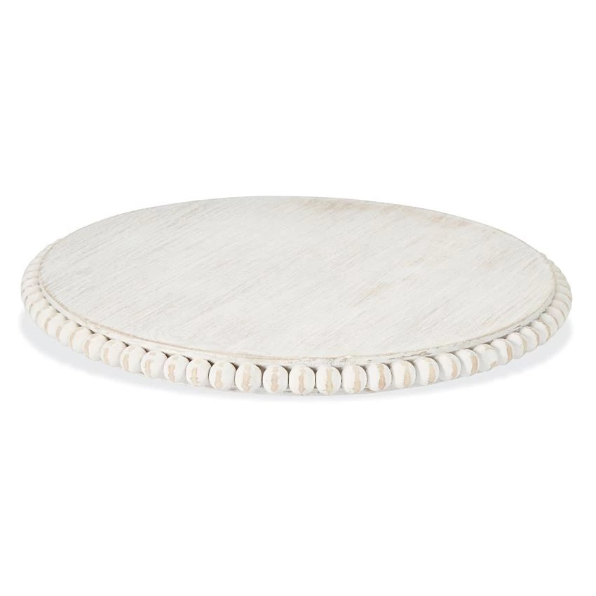 Beauty and utility combine in this fabulous whitewashed mango wood Lazy Susan that features a beaded rim. Pass the salt? No problem!