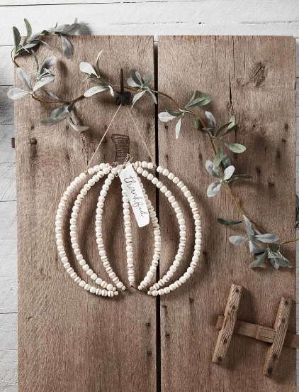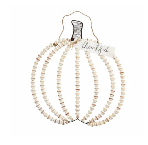 Adorable white beaded pumpkin hanger, with thankful tag.