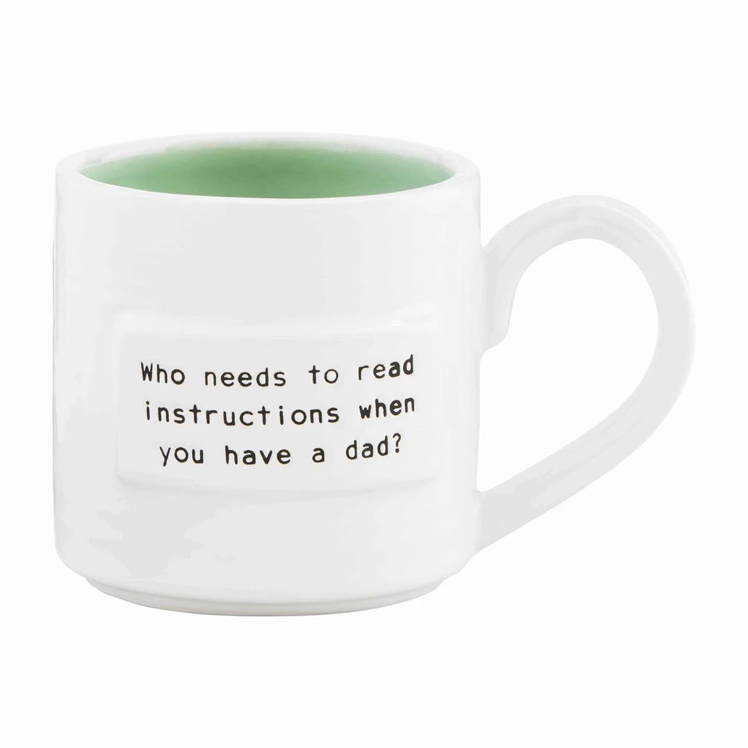 Great gift for Dads Day, our white ceramic mug features ripple texture, pale green inside glaze, and vote of confidence for Dad sentiment.Â