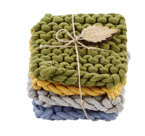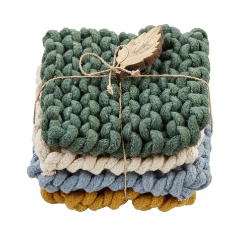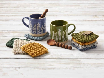 A reminder to enjoy our blessings, these crochet coasters feature 4 different beautiful fall colors — in two different color combinations. A great hostess gift!