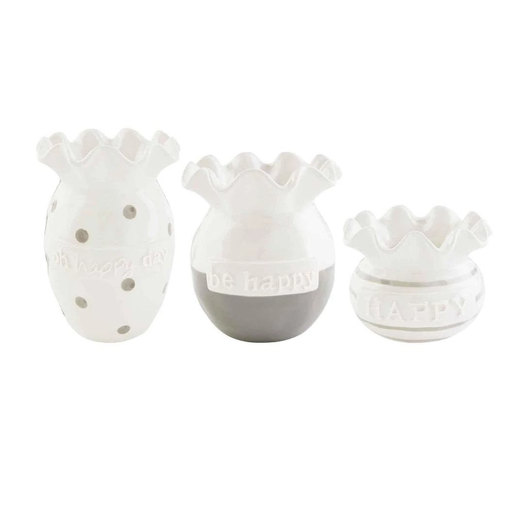 Hand-painted gray and white ceramic vase with ruffle rim. Choose from three styles/sizes.