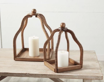 Can you picture these lovely lanterns on your hearth, buffet, coffee table or entry console? Fabulous mango wood open-air lanterns feature beaded detail and top knob finials. Consider a flameless candle and boxwood wreath inside! Adaptable to many decor styles. Purchase individually or as a set.