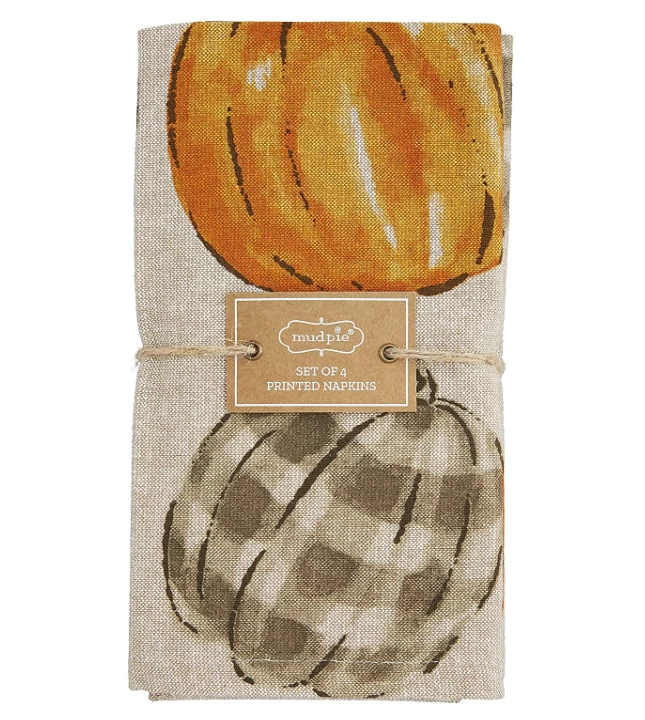 Be ready for your holiday guests with this set of four chambray napkins printed with watercolor pumpkin artwork. Cloth napkins are ecologically friendly!